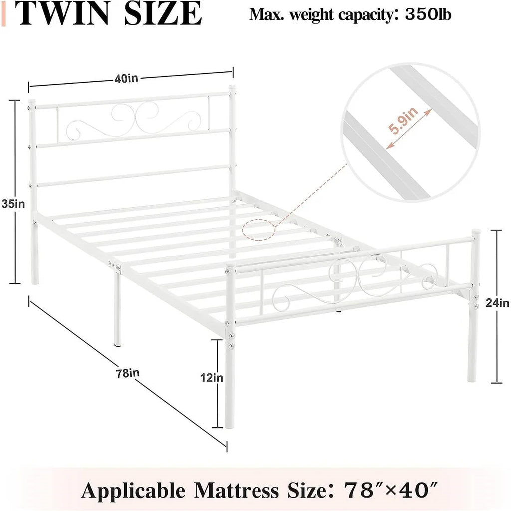 - Twin size White Metal Platform Bed Frame with Headboard and Footboard