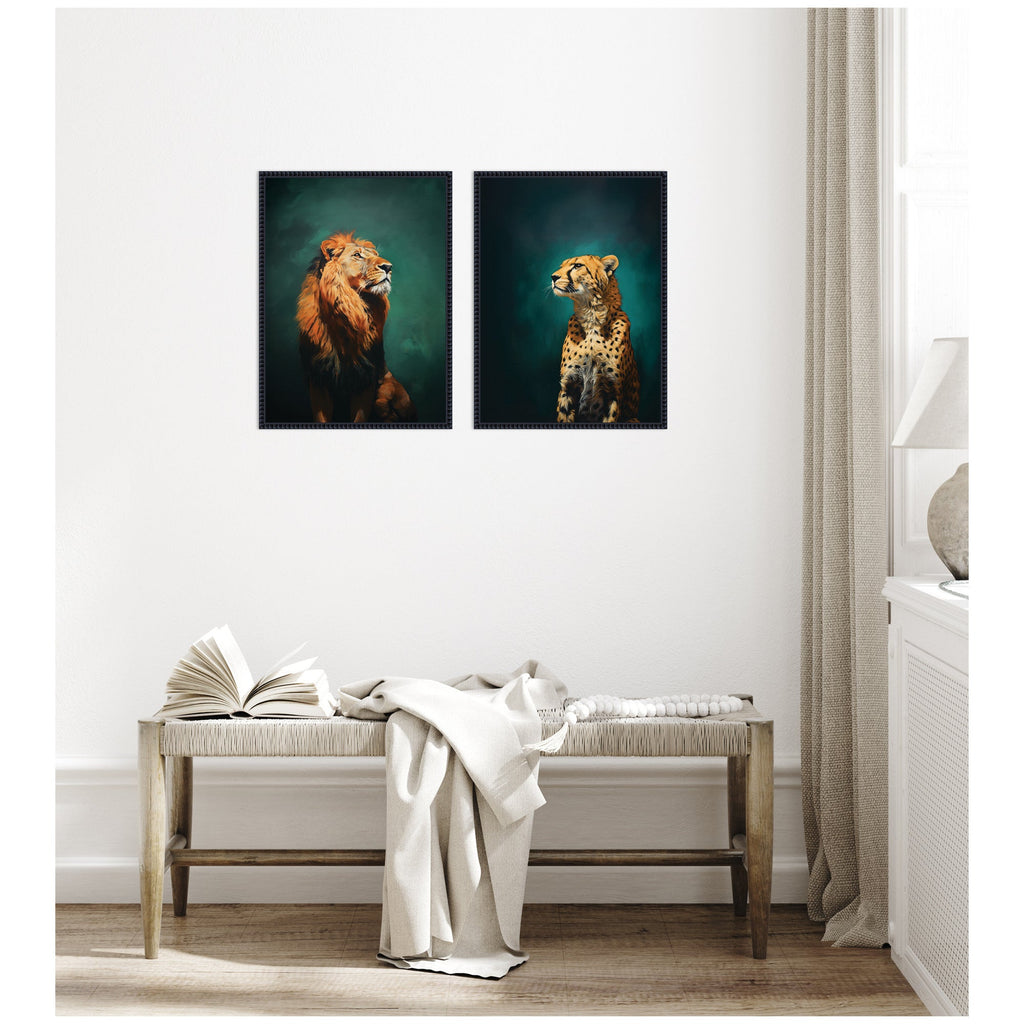 - Twlight Lion and Cheetah 2 Piece framed canvas set is giclee printed using fade-resistant inks, ensuring every detail comes to life in rich, lasting color