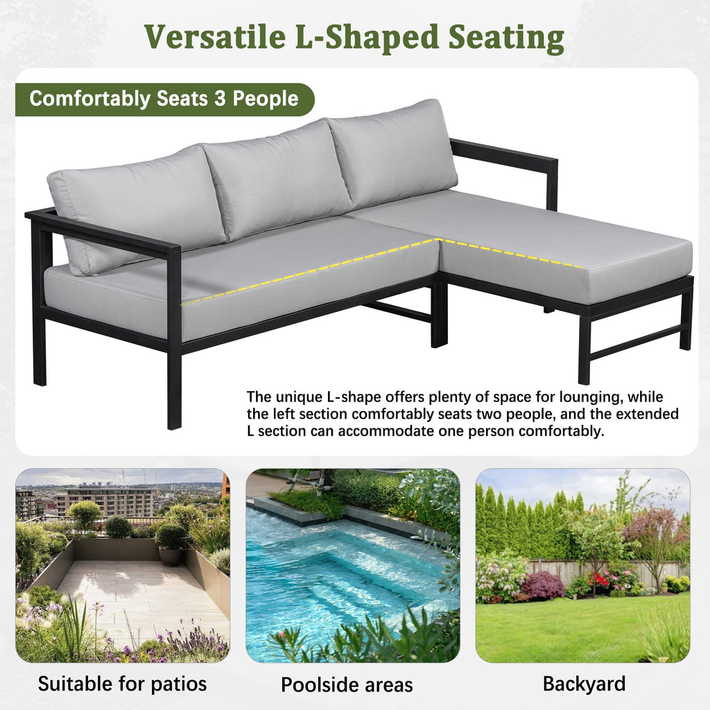The U_style outdoor L-shaped sofa provides comfortable seating for three, making it perfect for patios, balconies, and garden spaces. Combining durable construction with a spacious design, it blends function and style for enhanced outdoor living.
