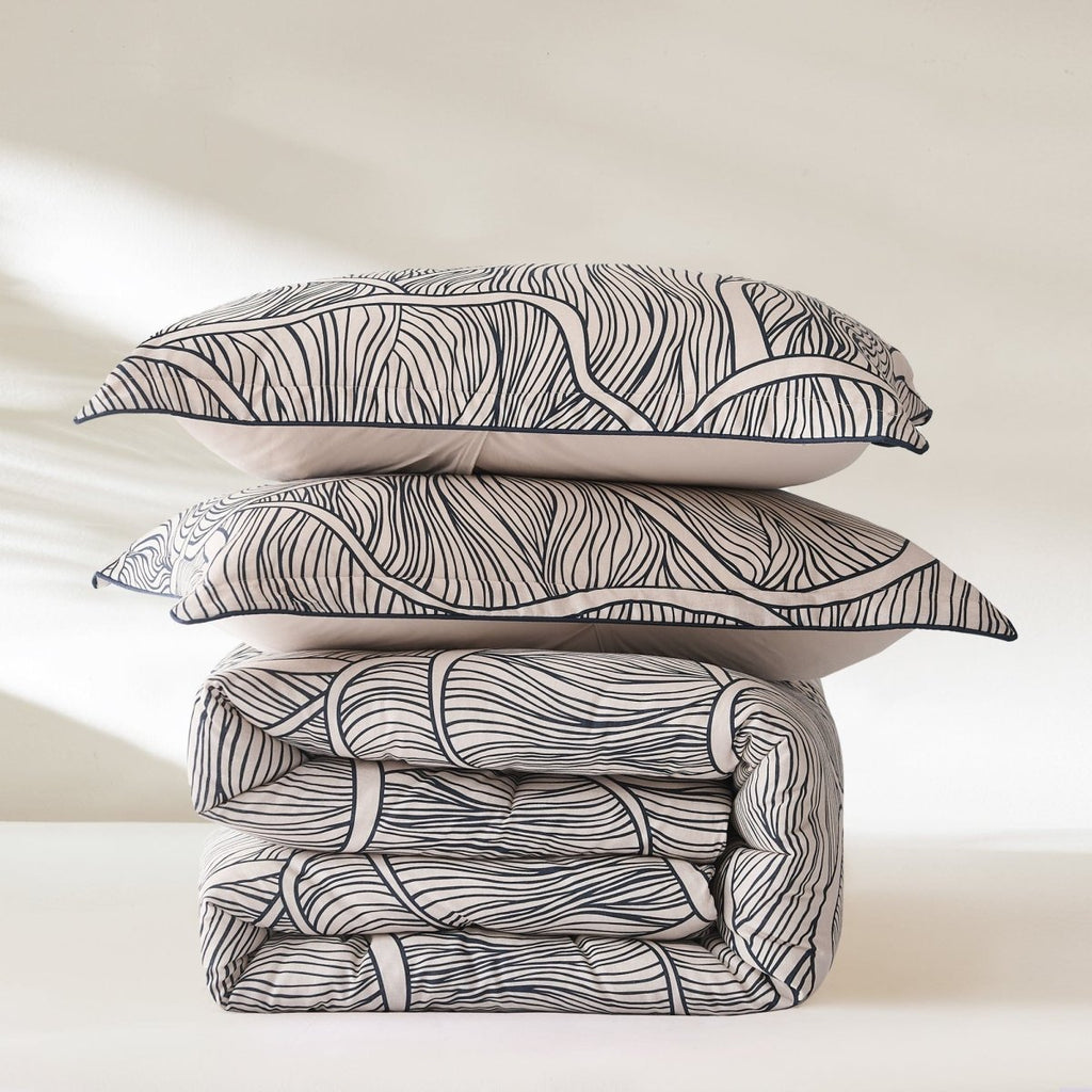 The Umbra Bloom Comforter Set brings artistry and dimension to your bedroom with a design inspired by the hidden patterns beneath a mushroom cap. Crafted on a woven linen fabric blend, this striking print reflects the intricate, rhythmic beauty of nature while adding movement and depth to your space. Soft yet substantial, the medium weight polyfill delivers year-round comfort, making this set as functional as it is beautiful.