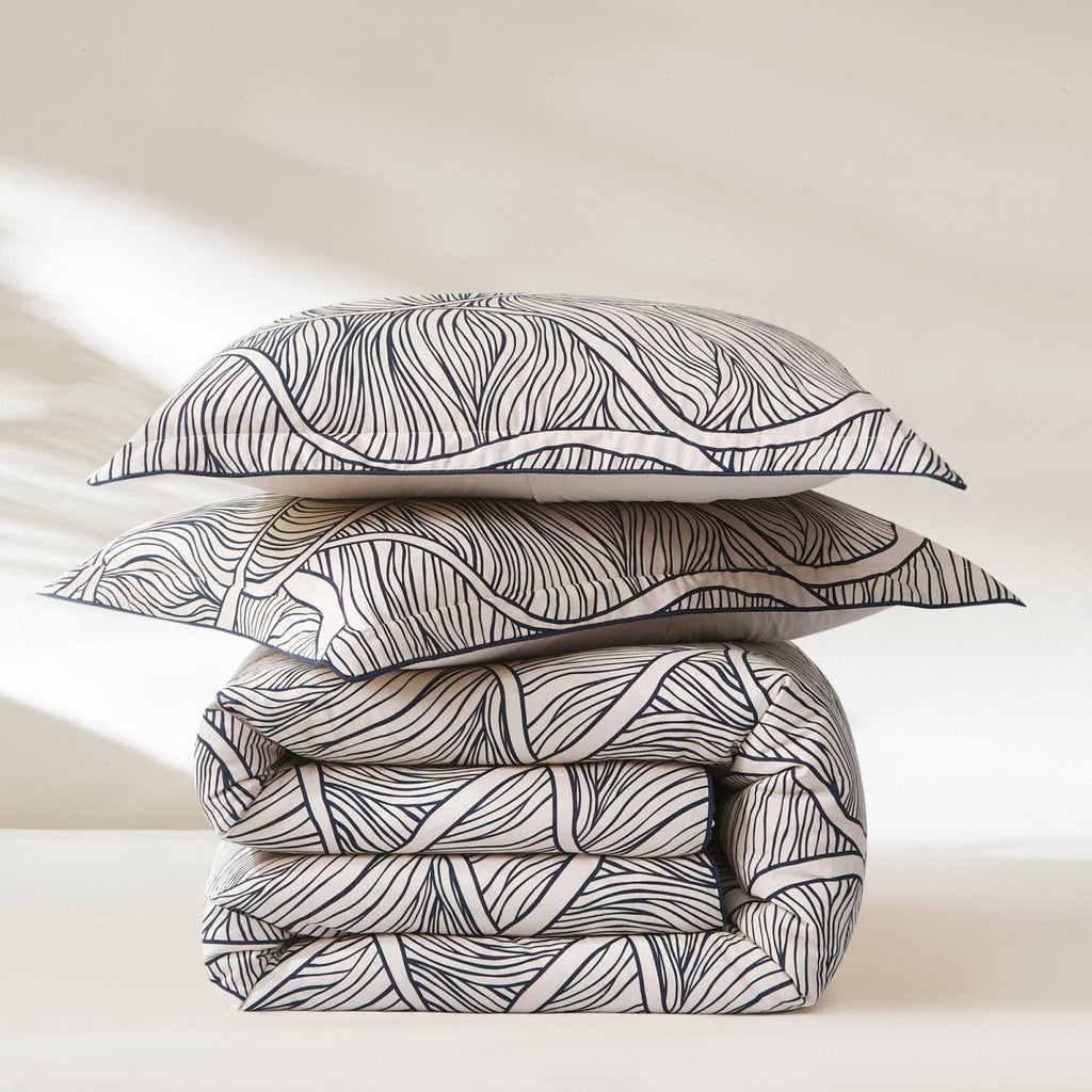 Bring artful texture and organic beauty into your bedroom with the Umbra Bloom Duvet Cover Set. This standout design draws inspiration from the intricate, rhythmic patterns found beneath a mushroom cap—translated into a bold yet natural motif. Woven on a linen-blend fabric, the pattern creates depth and visual movement, instantly transforming your space into a modern retreat.