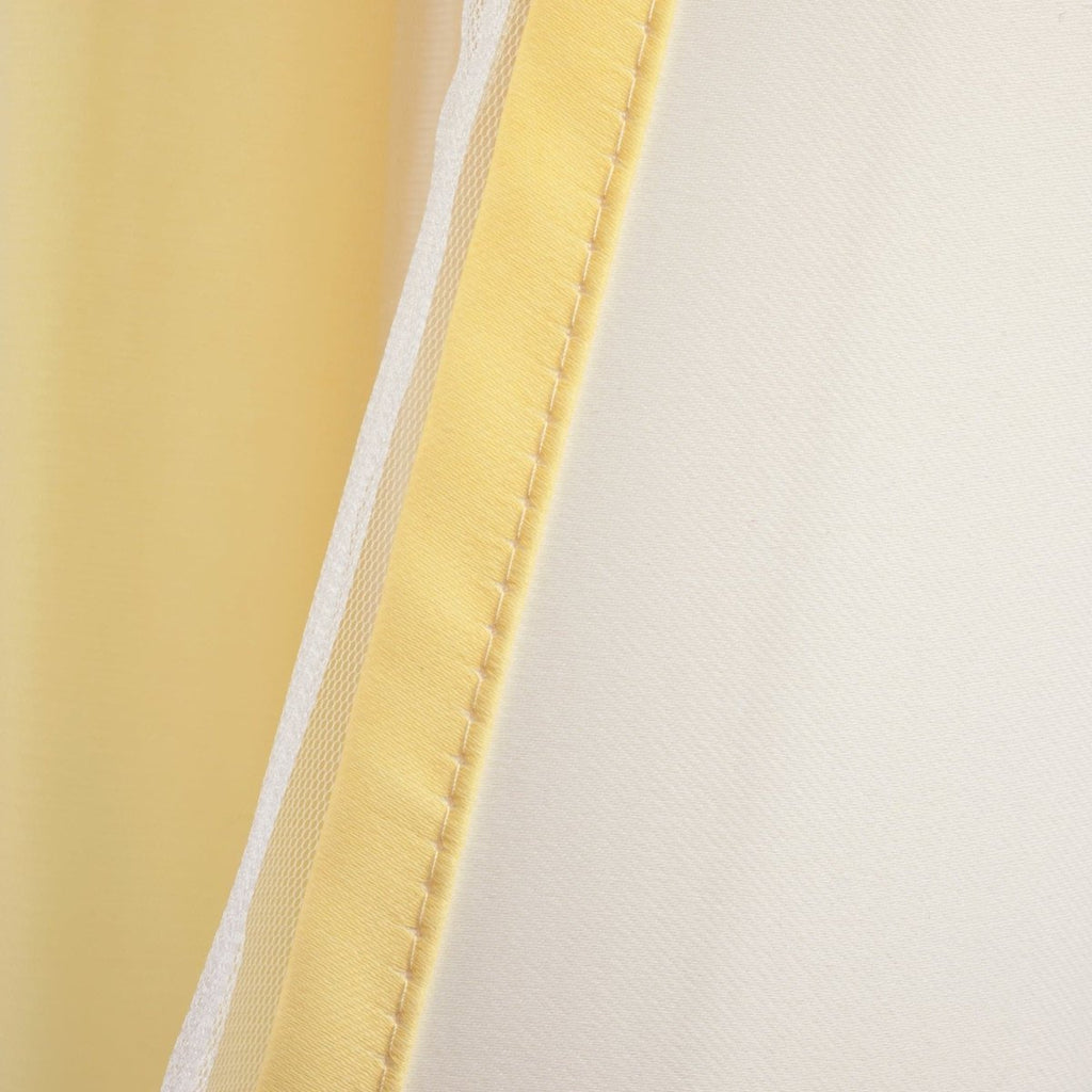 Our Umbre Fiesta Sheer/Light Filtering Window Curtain Panel is available in multiple color options, including yellow/gray and blush/gray. Each panel is 38 inches wide and 84 inches in length. This curtain style is sold by the single panel, so you will need to purchase two panels to get the look in the image.