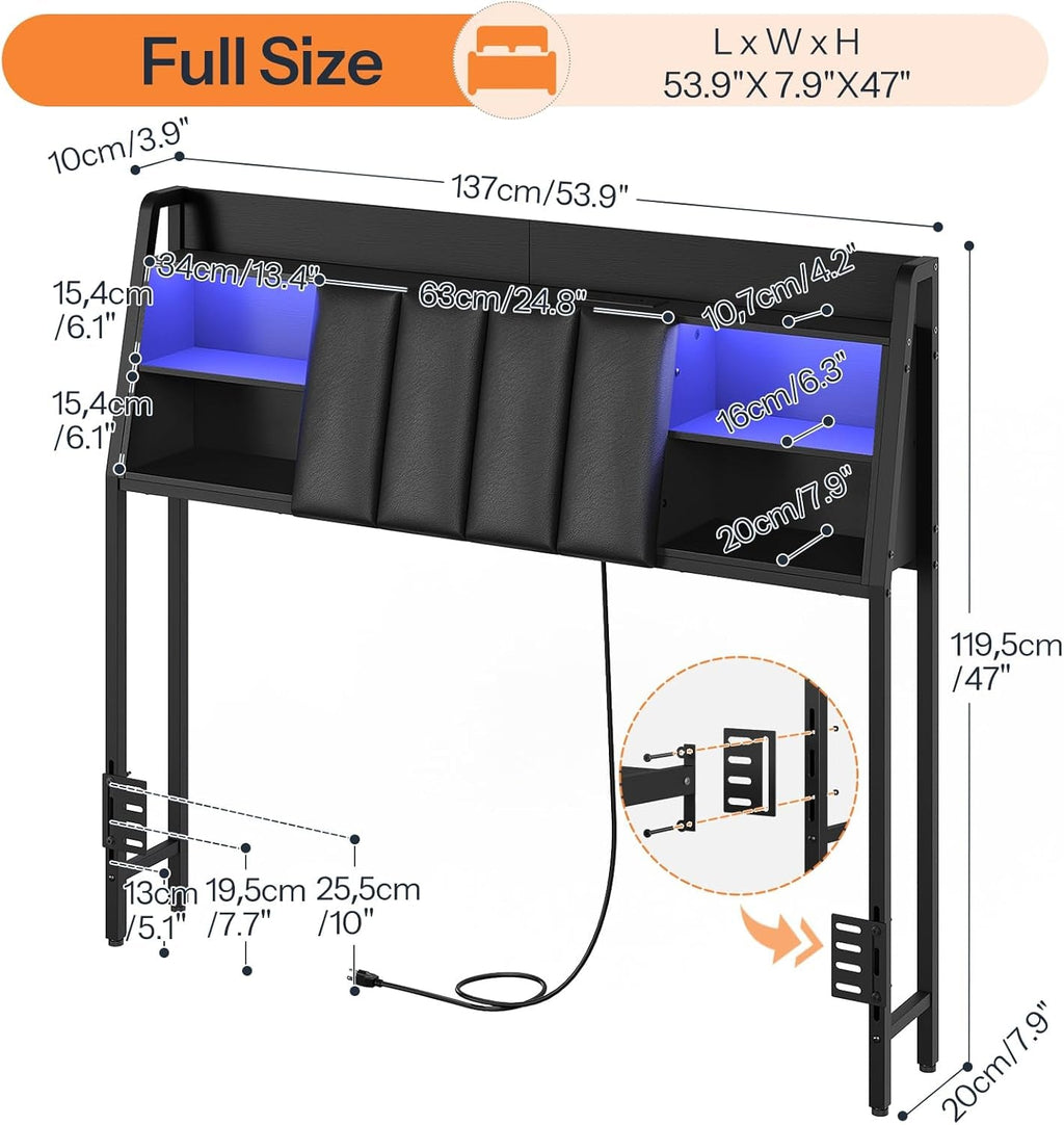 Don’t miss out on the chance to revolutionize your bedroom. Add this Upholstered Full Size Headboard with LED Lights and Storage to your cart today!