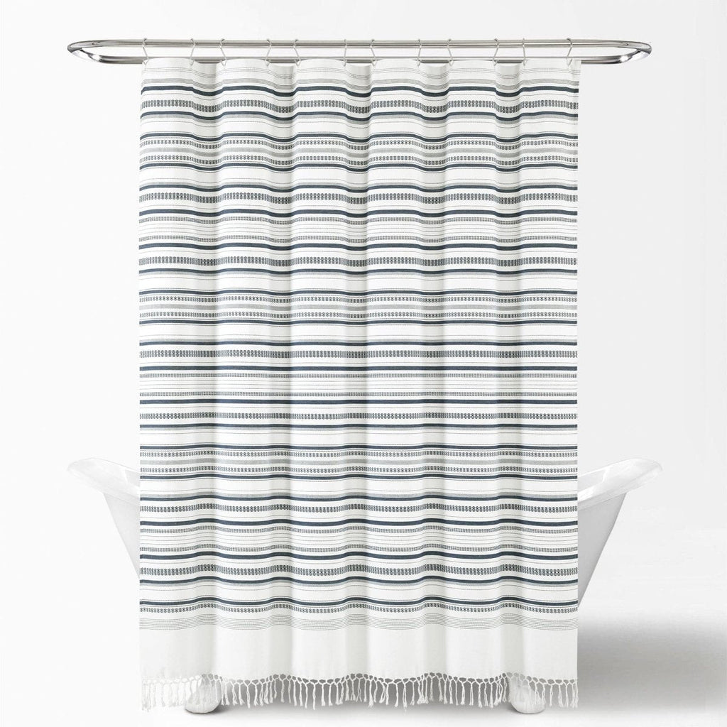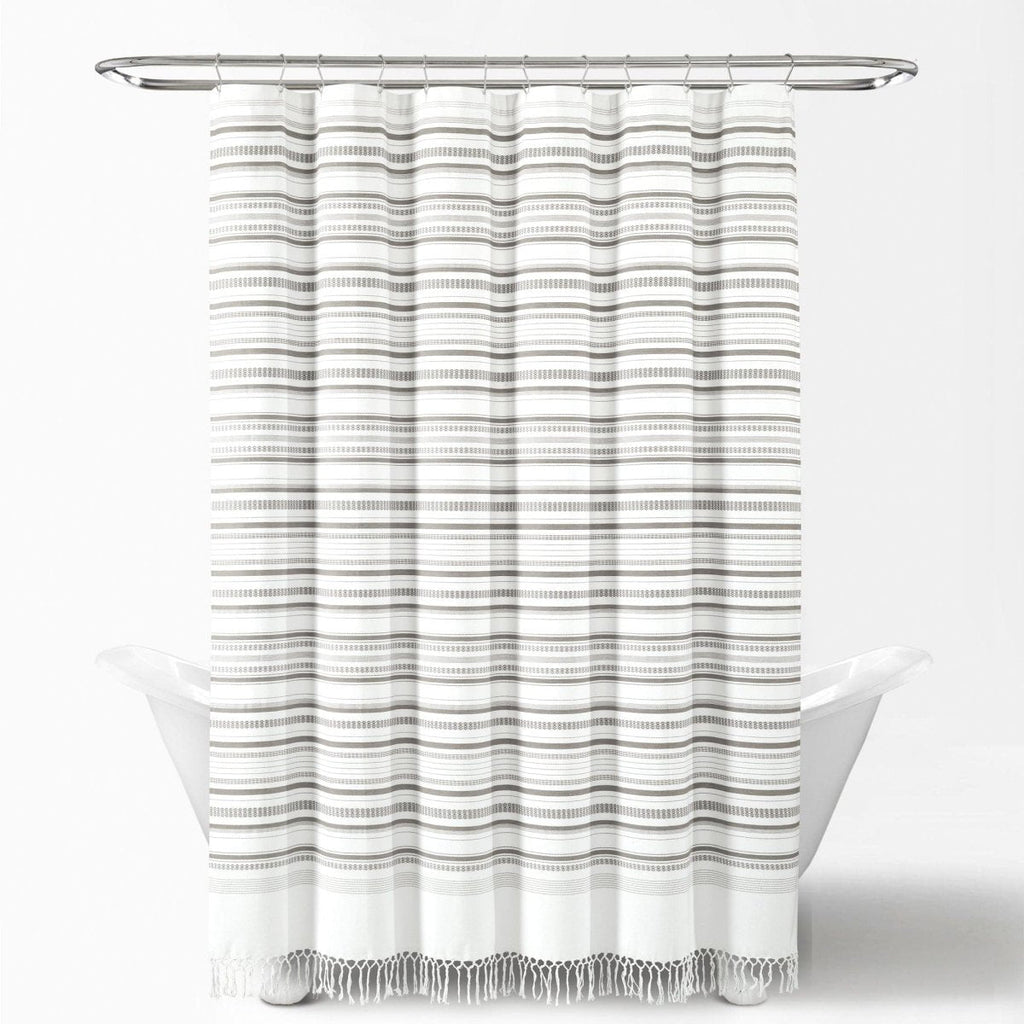 Create an inviting and cozy space in your primary, guest, or teen's bathroom when you add this Urban Woven Yarn Dyed Recycled Cotton Shower Curtain. The neutral toned alternating horizontal striped pattern paired with the delicate tassel fringe makes this piece easy to style with your existing bathroom decor. Plus, the eco-friendly recycled cotton makes this a purchase you can feel good about.