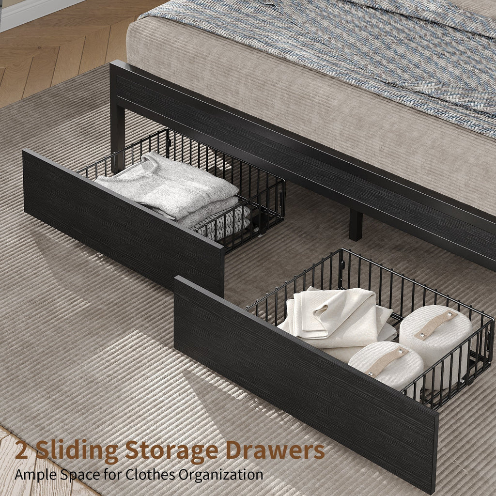 Declutter with 2 under-bed drawers for clothes and linens, plus a headboard shelf for books or decor. Keep essentials organized and within reach.Plush Upholstered Headboard