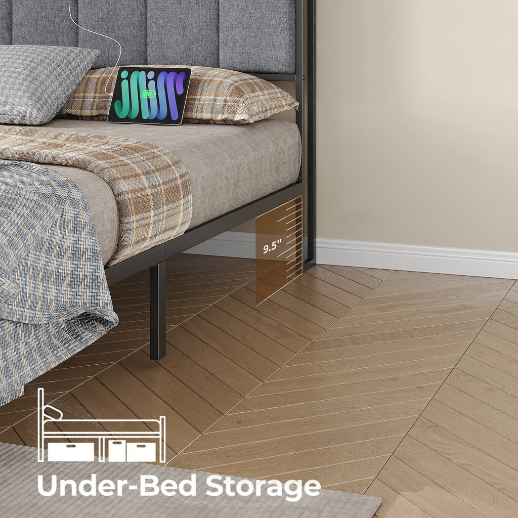 Steel frame supports up to 1200 lbs and has 13" under-bed clearance. Available in Queen (86.3"x60.3") and Full (81.6"x54"), fitting most rooms.Easy Assembly & Modern Style