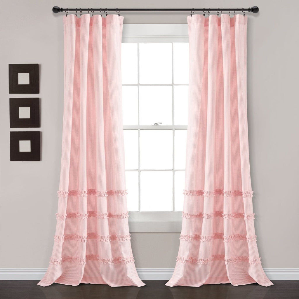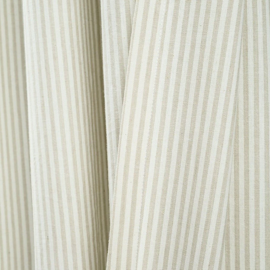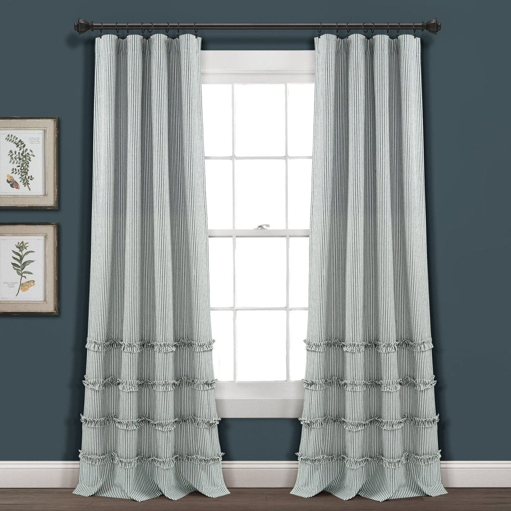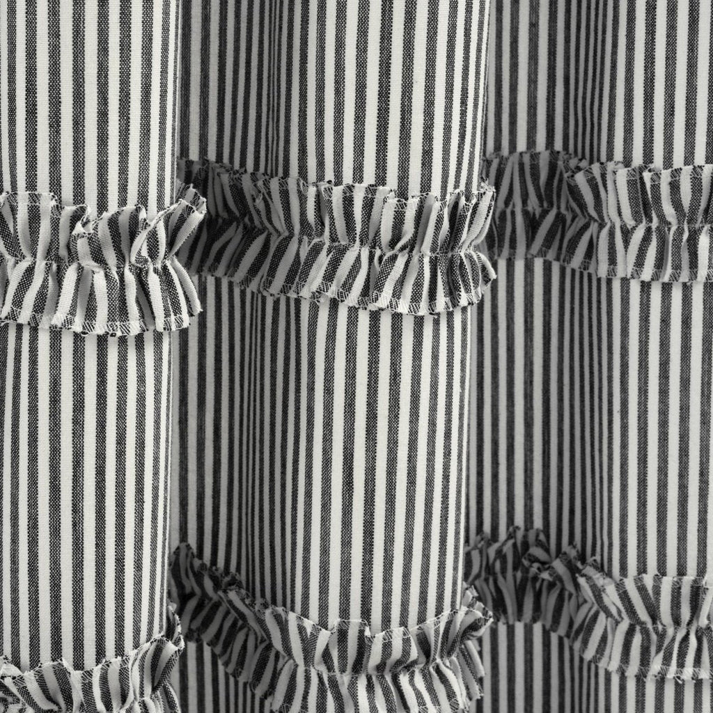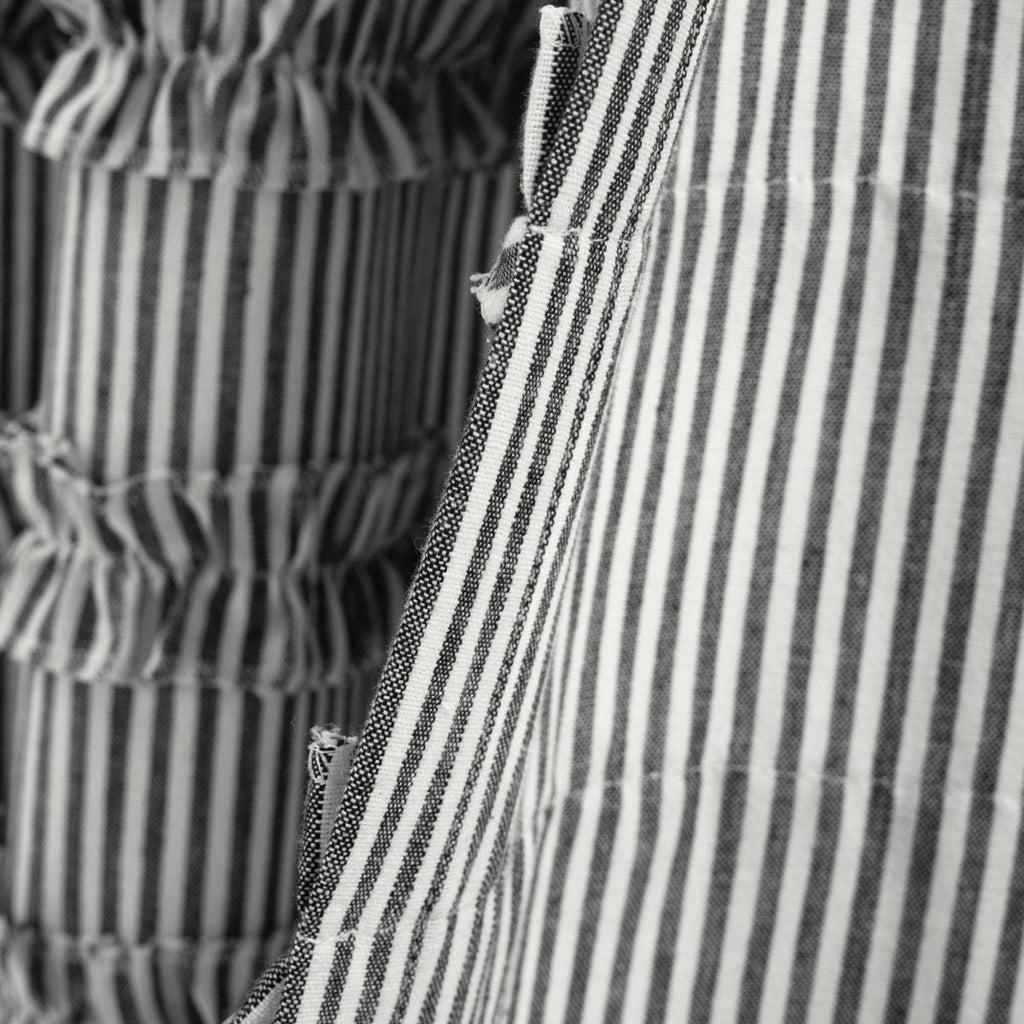 This Vintage Stripe Yarn Dyed Window Curtain Panel Set will also fit into additional home decor themes, such as coastal, boho or nautical. Neutral hues and a simple vertical pin stripe pattern, combined with the textured rows of ruffles, create a look that makes it easy to match nearly any space.