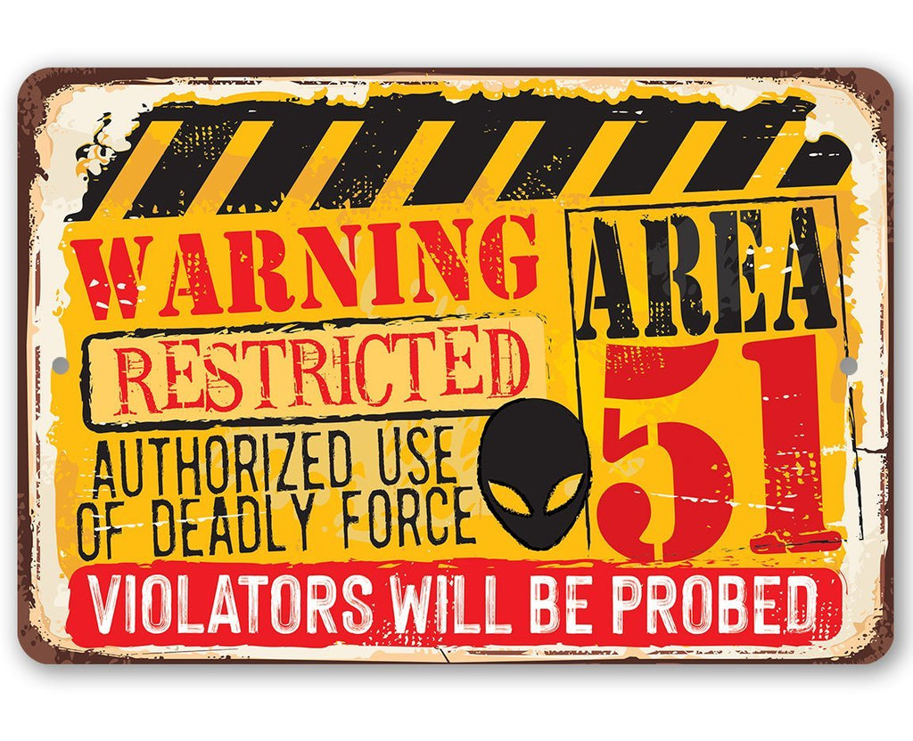 Tin - Warning Area 51 - Metal Sign - 8"x12"/12"x18" - Use indoor/outdoor - Property Warning Sign