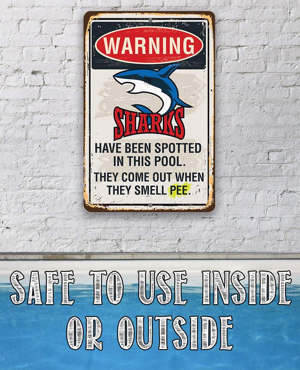 This is one of the amazing Sharks in Pool joke metal signs and a wonderful poolside décor as well. Plus, it is light enough to be mounted with double-sided foam tape or Command Strips. It has been printed on aluminum using epoxy ink that guarantees not to rust, fade or peel.