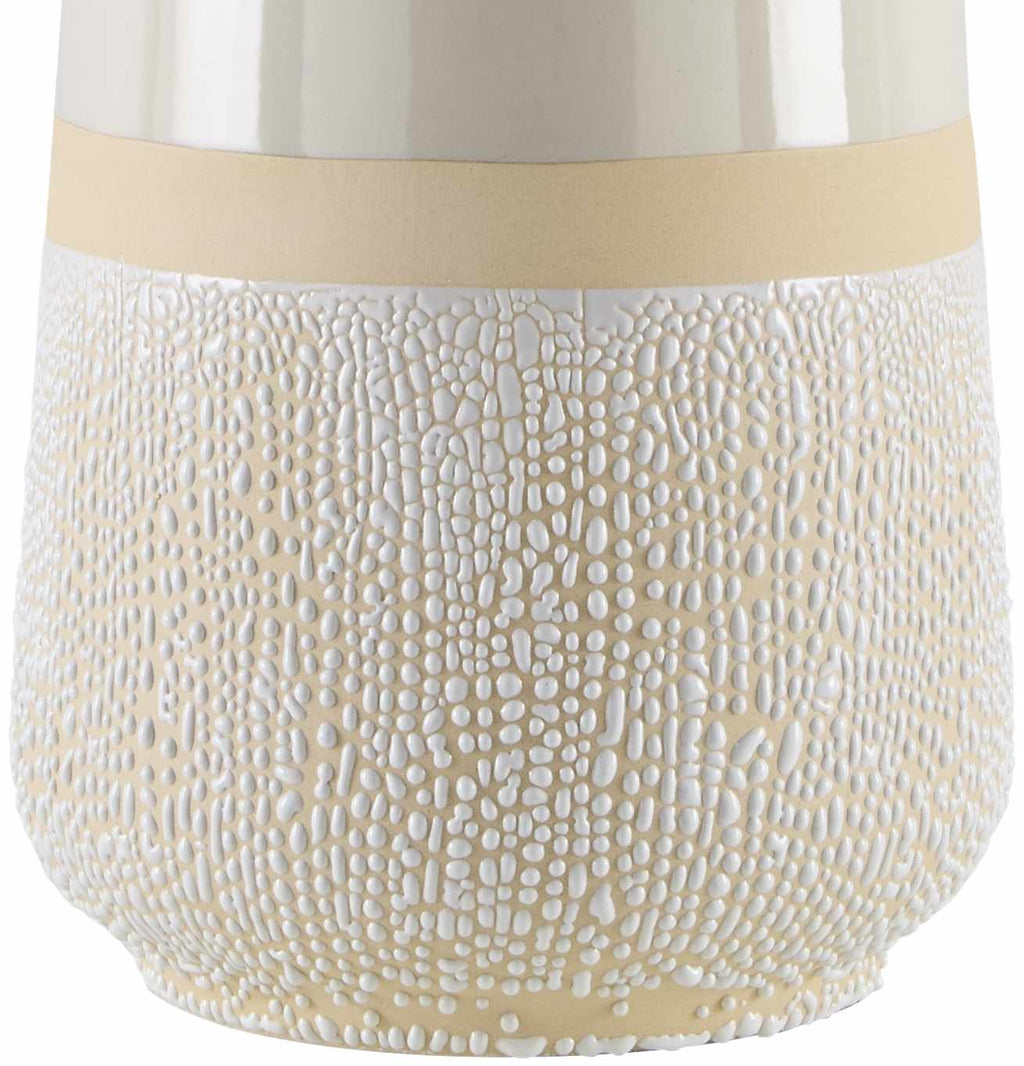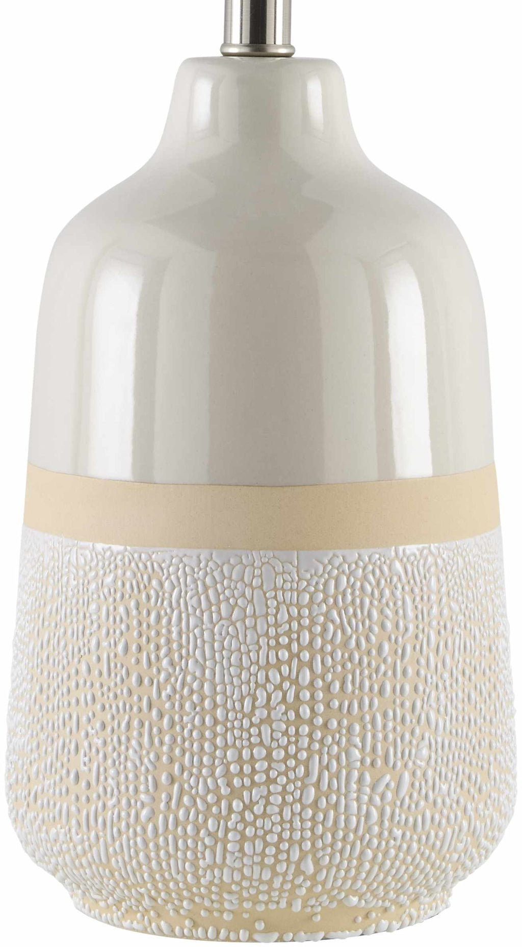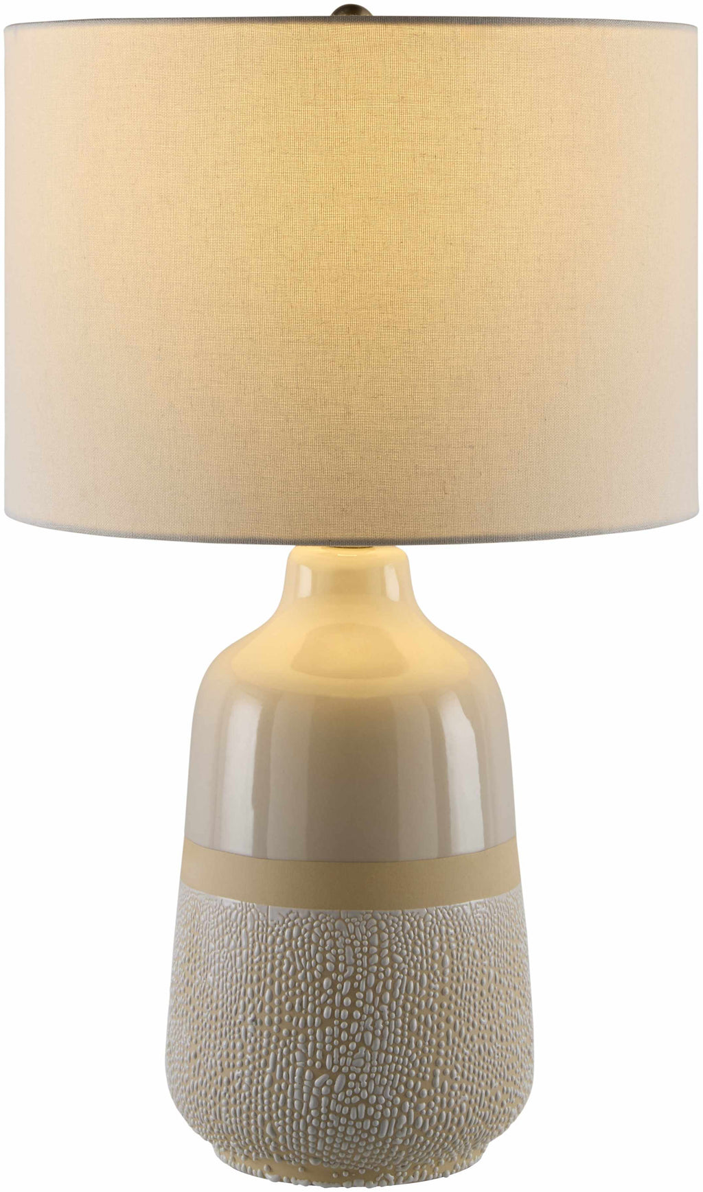 Material: Body: Ceramic / Shade (Outside): Linen / Shade (Inside): Plastic / Finial: Iron |