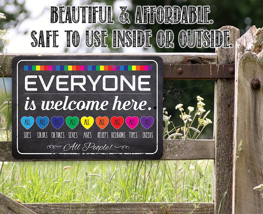 Tin - Welcome Everyone Rainbow - Metal Sign - 8"x12"/12"x18" - Use indoor/outdoor - Equality Promoting Sign