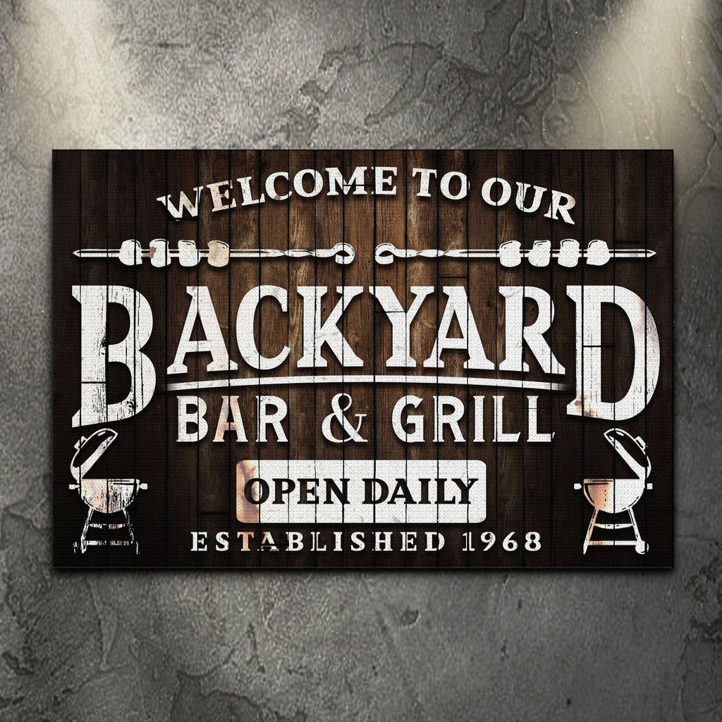 This custom Welcome To Our Backyard Bar And Grill Wall Art will help you create the perfect atmosphere for your backyard hangouts. With its rustic look, this sign will catch everyone's eye and make them want to hang out in your backyard. It also makes an excellent gift for a friend who loves hosting parties!