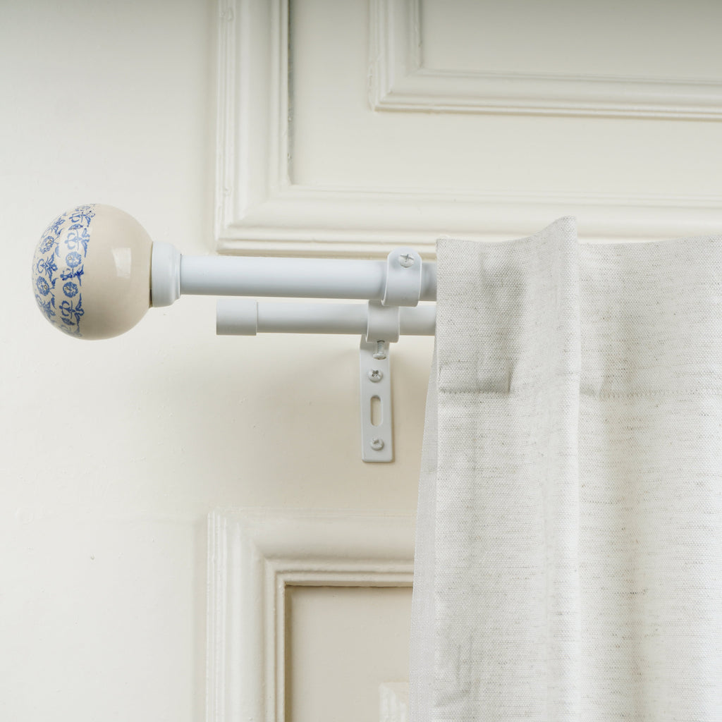 This elegant white and blue double curtain pole will add a touch of classic charm to your windows. Featuring delicate floral ceramic finials, this extendable pole is perfect for layering curtains and creating a bright and airy atmosphere.