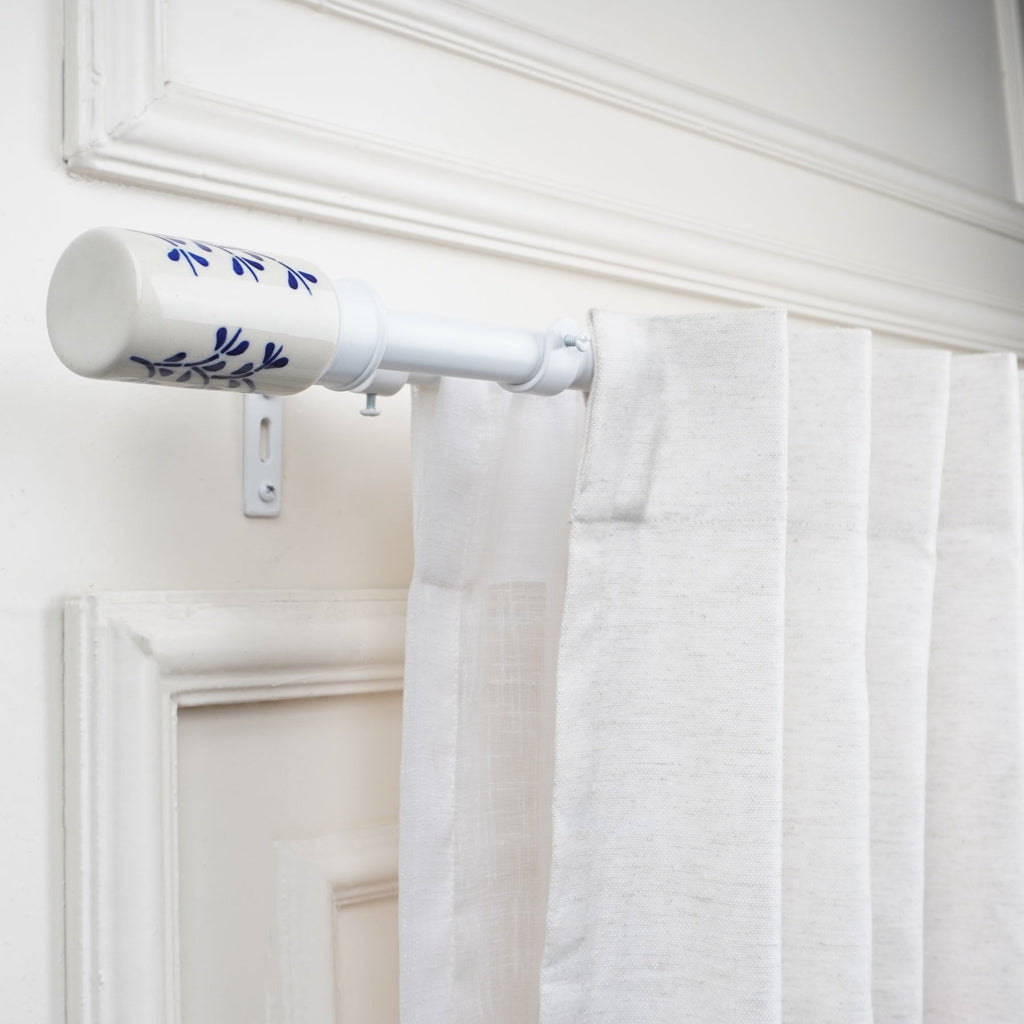 White Extendable Double Curtain Pole with Ceramic Finials - A Classic Choice for Elegant Windows