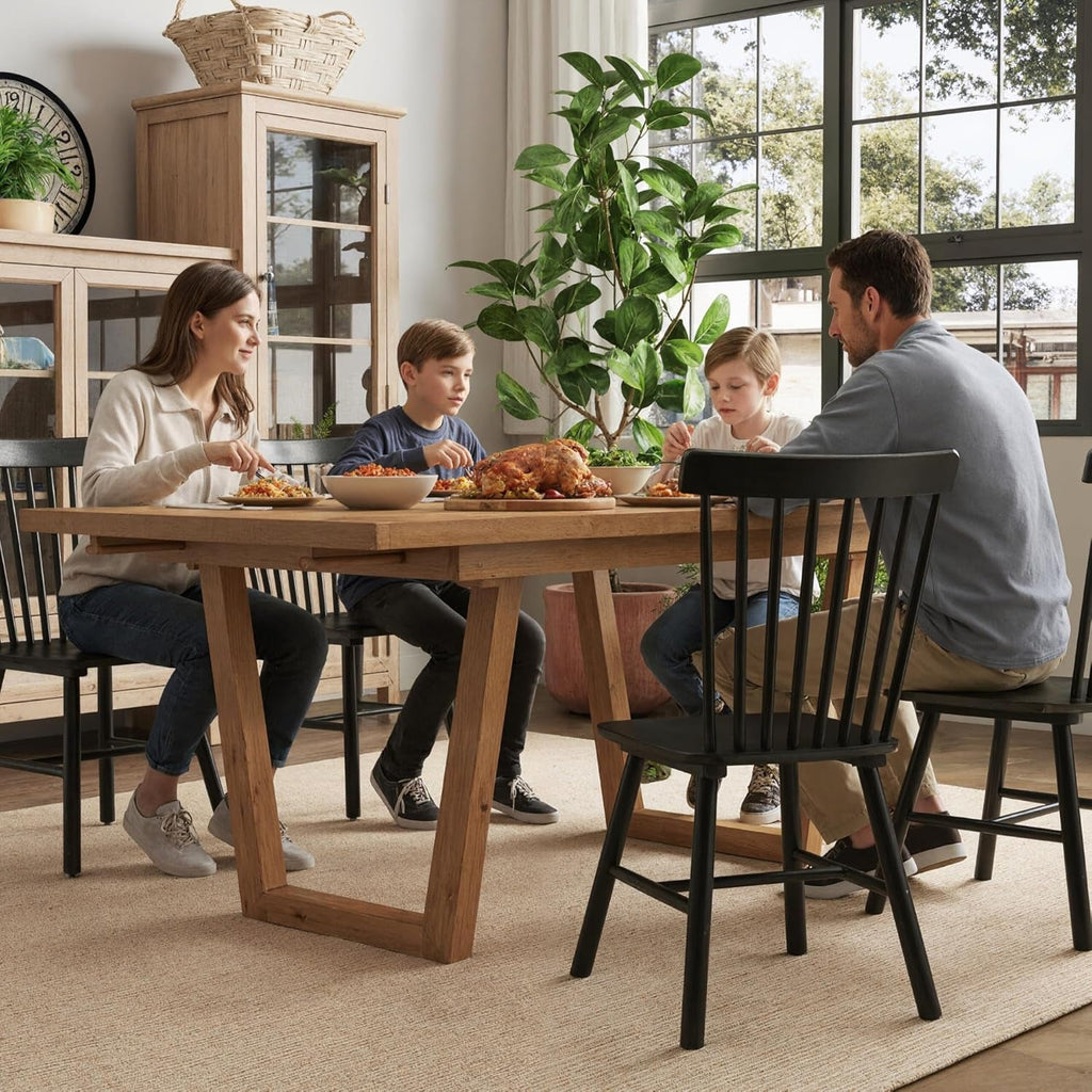 Designed for everyday use, these chairs are built from 100% natural solid hardwood with lasting stability. The durable rubberwood construction supports up to 300 pounds, giving you peace of mind during family meals and gatherings.