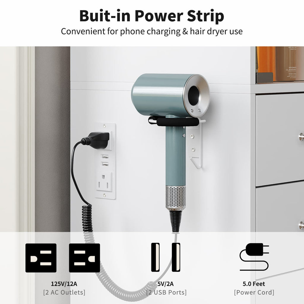 Built-in Power Station:This vanity desk includes a built-in hair dryer stand and a charging station with 2 AC outlets and 2 USB ports. Easily charge your phone, tablet, or plug in styling tools like hair dryers and curling irons—no more messy cords!