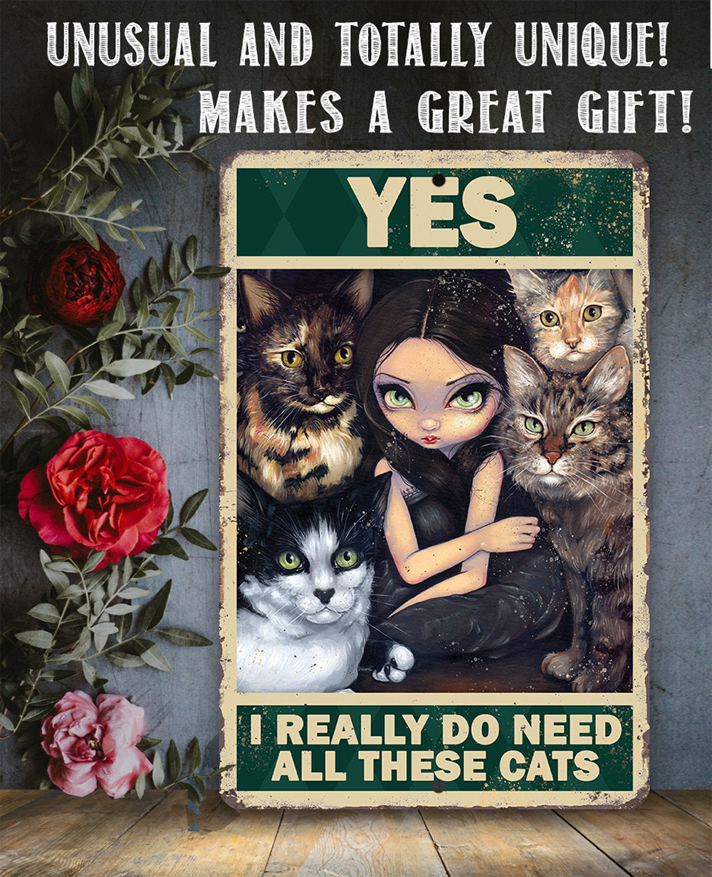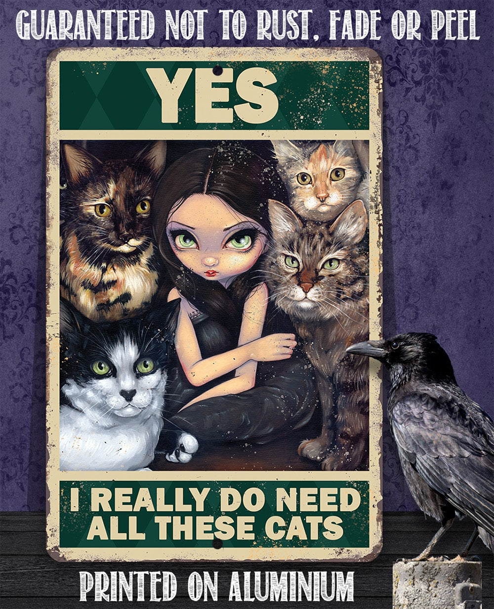 Tin - Gothic Metal Sign - Yes I Really Do Need All These Cats - Durable-Use Indoor/Outdoor - Wiccan, Witch, Occult, Magic