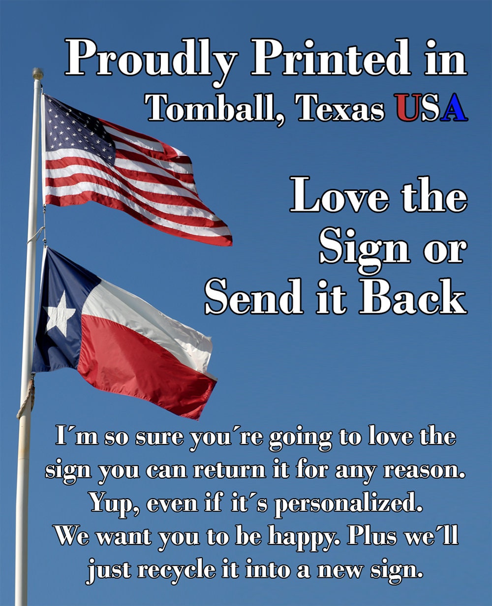 Durable - 8" x 12" or 12" x 18" Aluminum metal sign printed with epoxy ink so you can hang it inside or outside