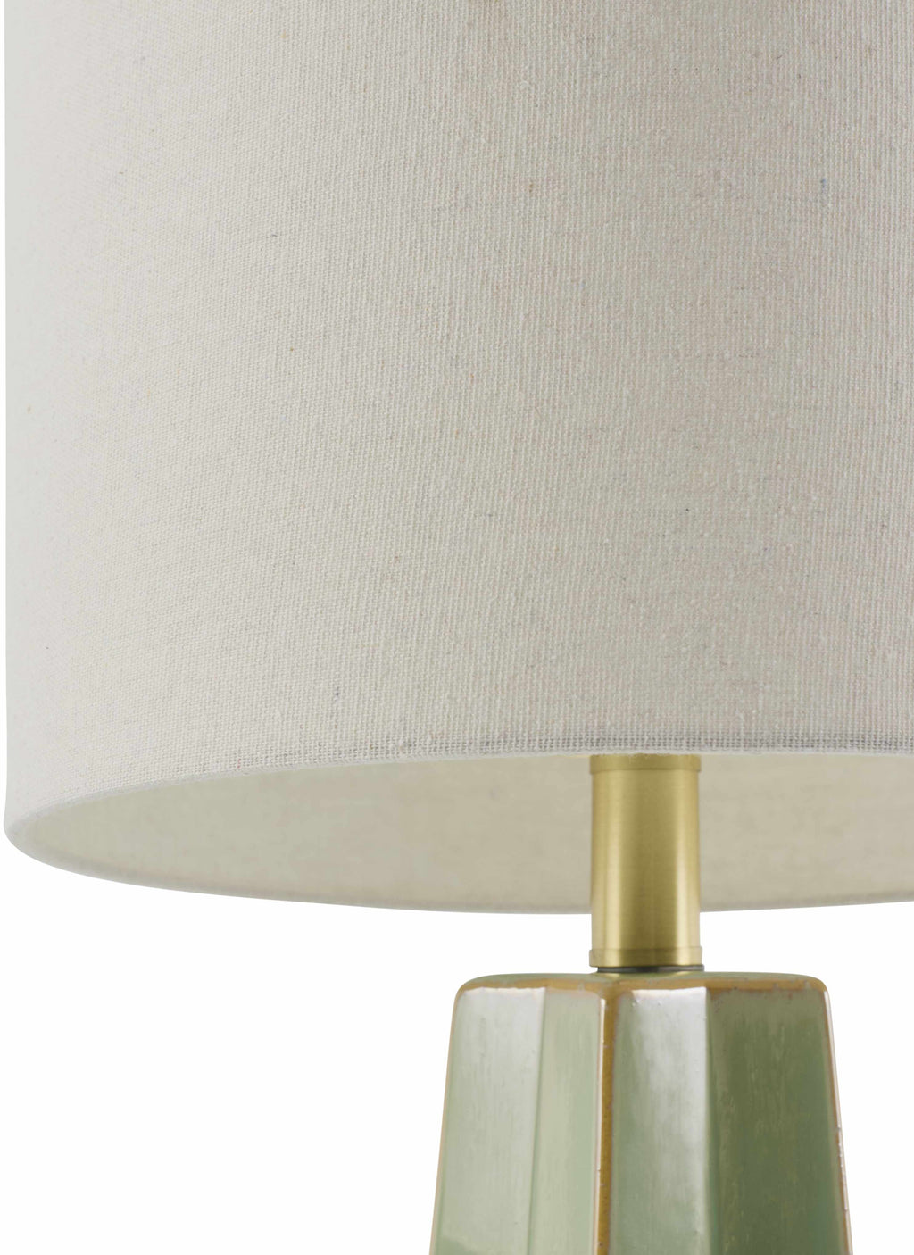 Material: Body: Ceramic / Shade (Outside): Linen / Shade (Inside): Polystyrene / Finial: Iron |