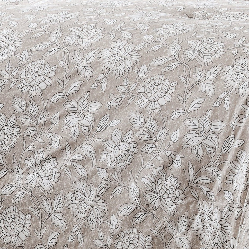 Add florals to your space with this comforter set. Designed with a traditional flower block print, this floral bedding blends boho and modern decor styles. Crafted from 100% cotton with a medium weight polyfill. This fully styled 8 piece bedding set includes 1 comforter, 1 platform bed skirt with a 15 inch drop, 2 shams, 2 euro shams, and 2 decorative throw pillows. STANDARD 100 by OEKO-TEX® certified, all components have been tested and certified free from harmful substances. Machine washable.